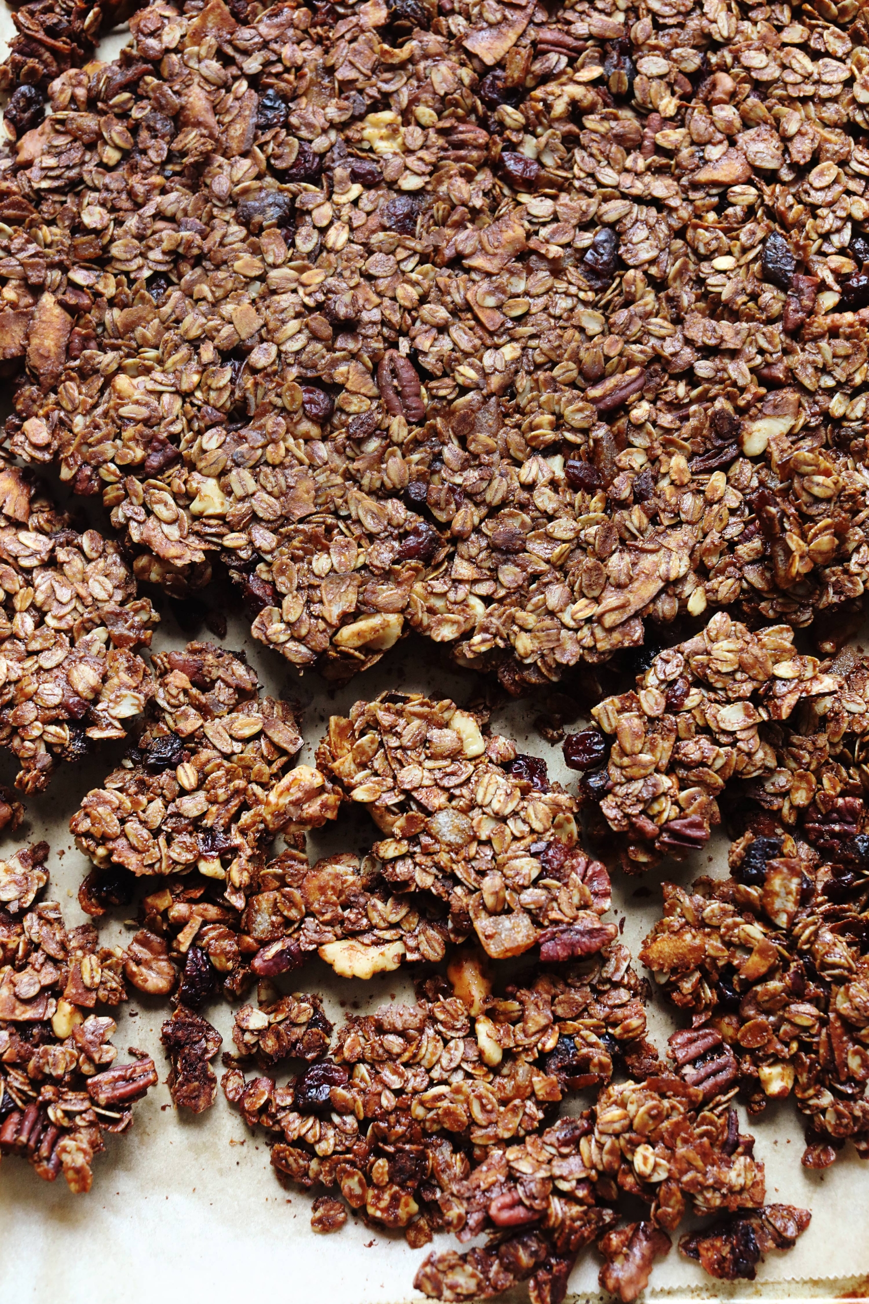 Let’s be honest. The best part about granola is the chunks. The way they land in your mouth, craggy and crunchy, requiring an actual <<chomp>> of your teeth, a shattering of caramelized everything, oat-and-nut shrapnel. Can you tell I’ve thought a lot about this? Yes. The chunks!